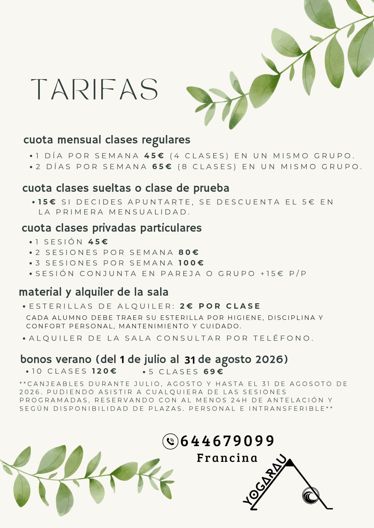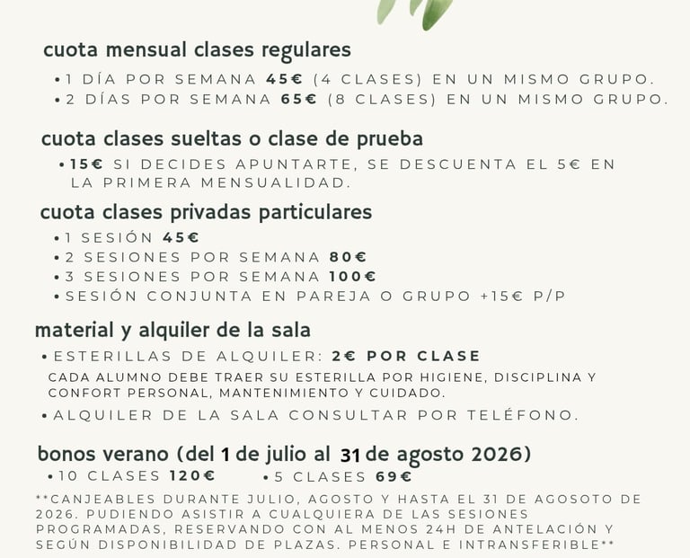 En Yogarau tenemos diversas tarifas adaptadas a tus necesidades y horarios, asegurando que puedas aprovechar al máximo tus clases.
